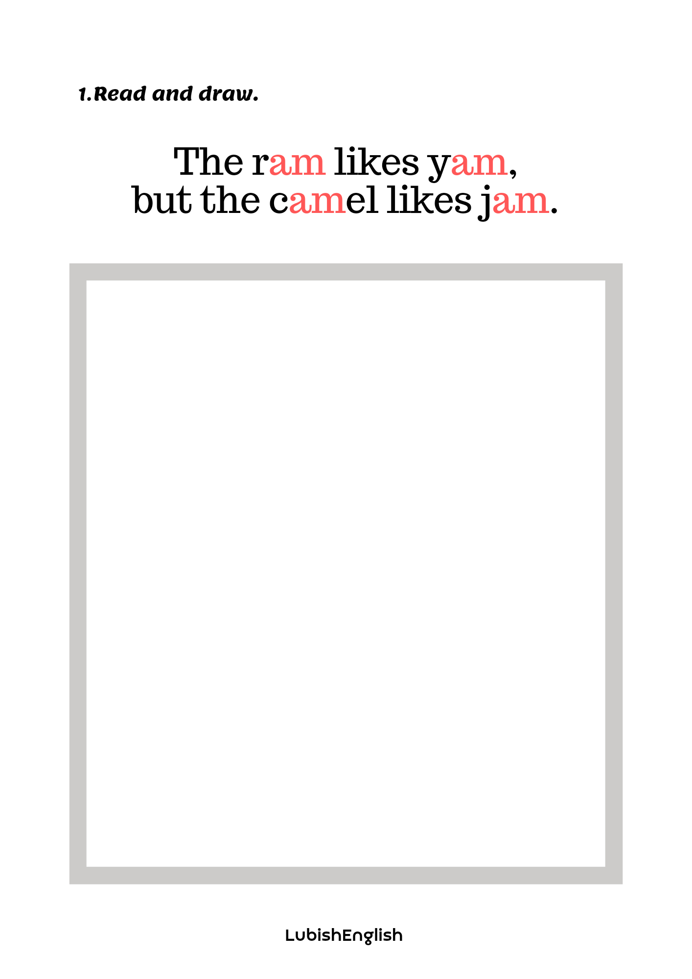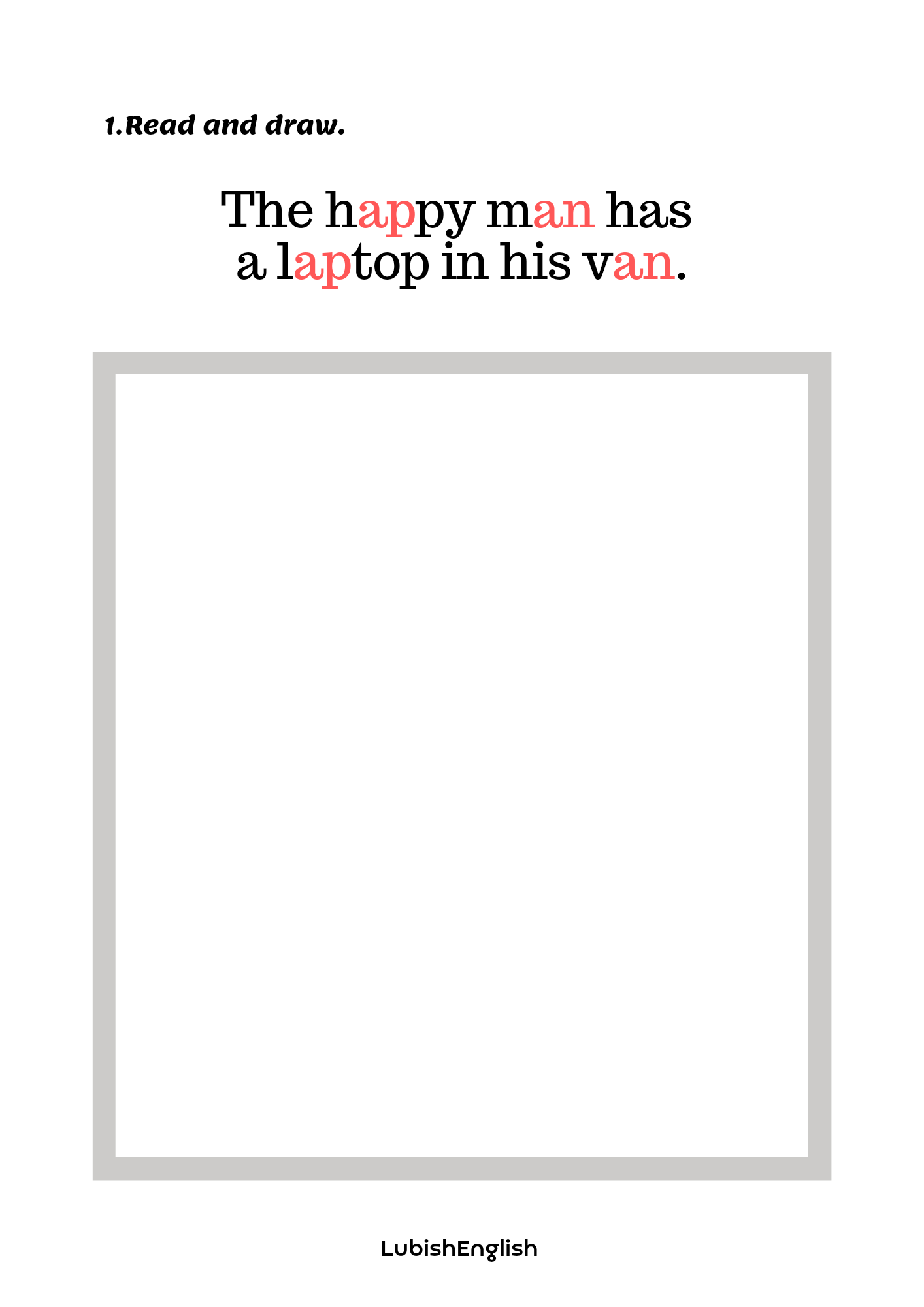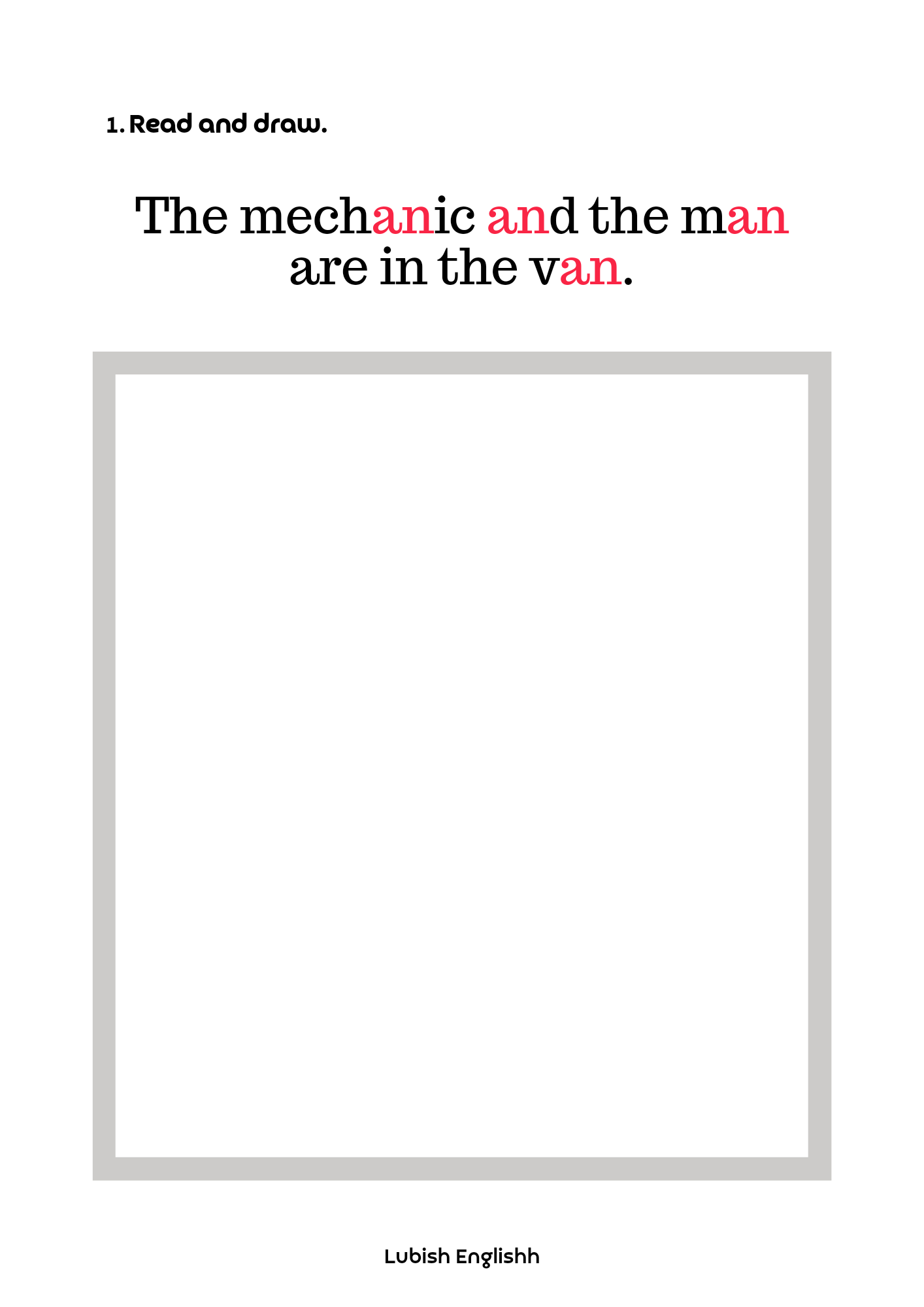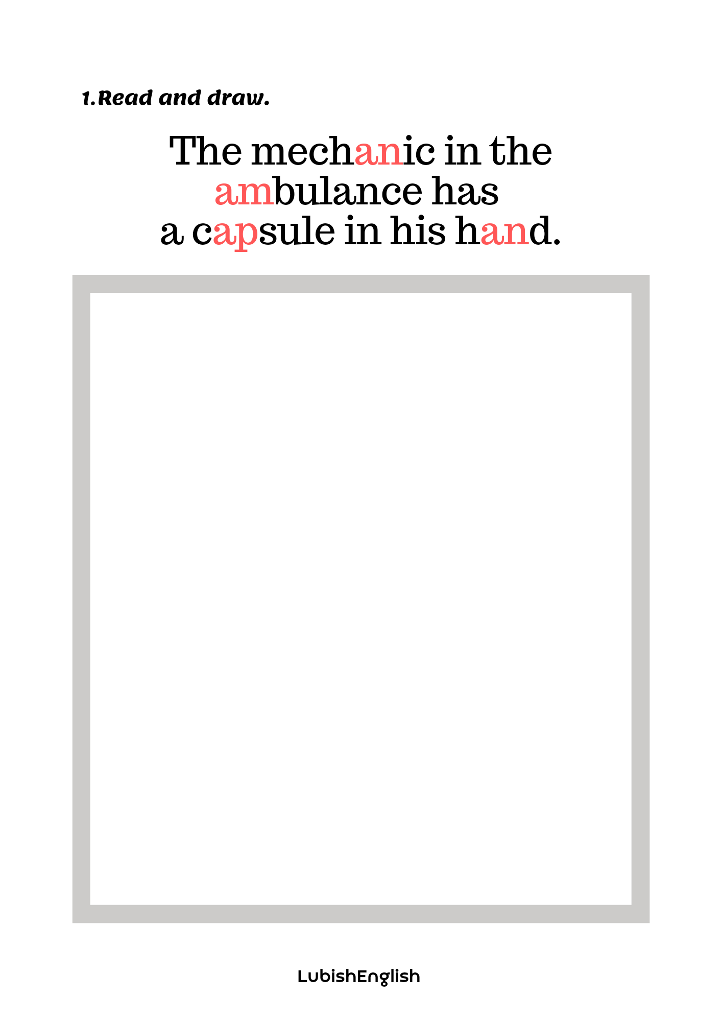 2. Read and draw – sześć kart pracy, w której doskonalimy czytanie ze zrozumieniem i prawidłową wymowę krótkiego dźwięku a /æ/. Bawimy się wyobraźnią tworząc kreatywne i nieoczywiste ilustracje.