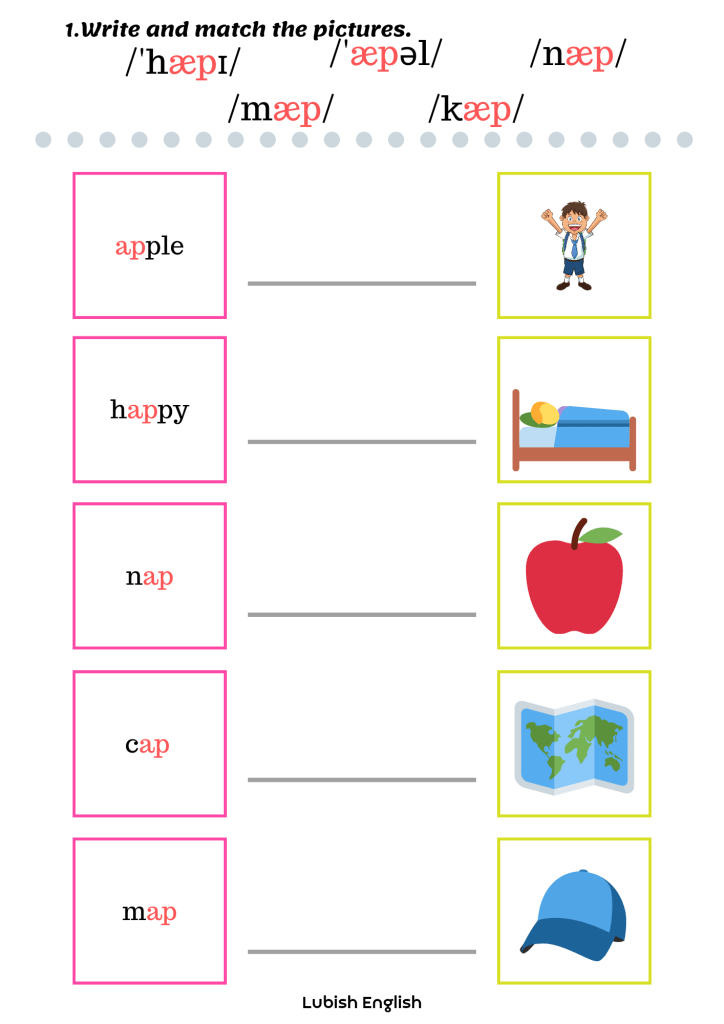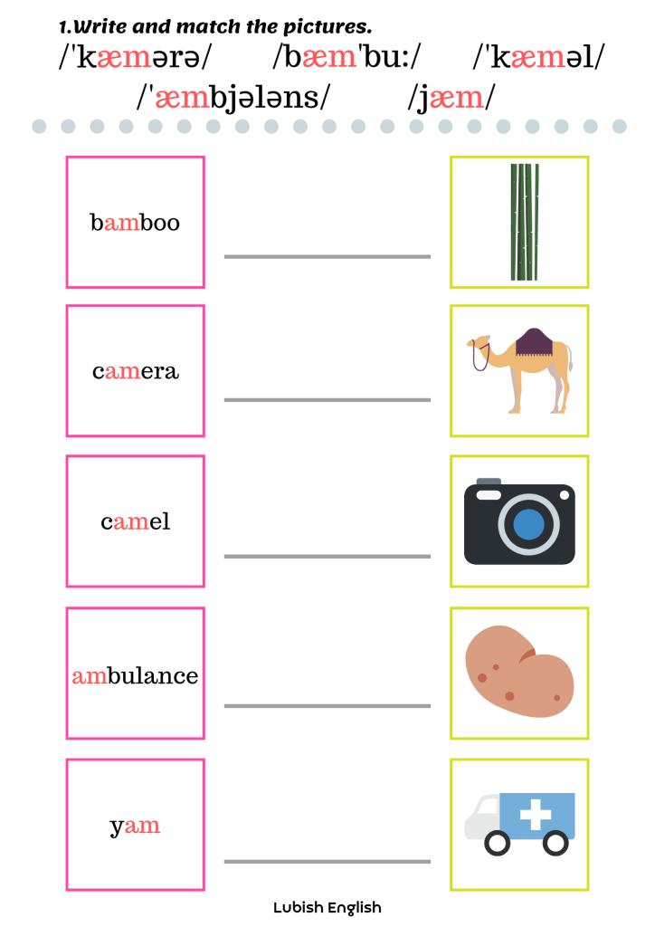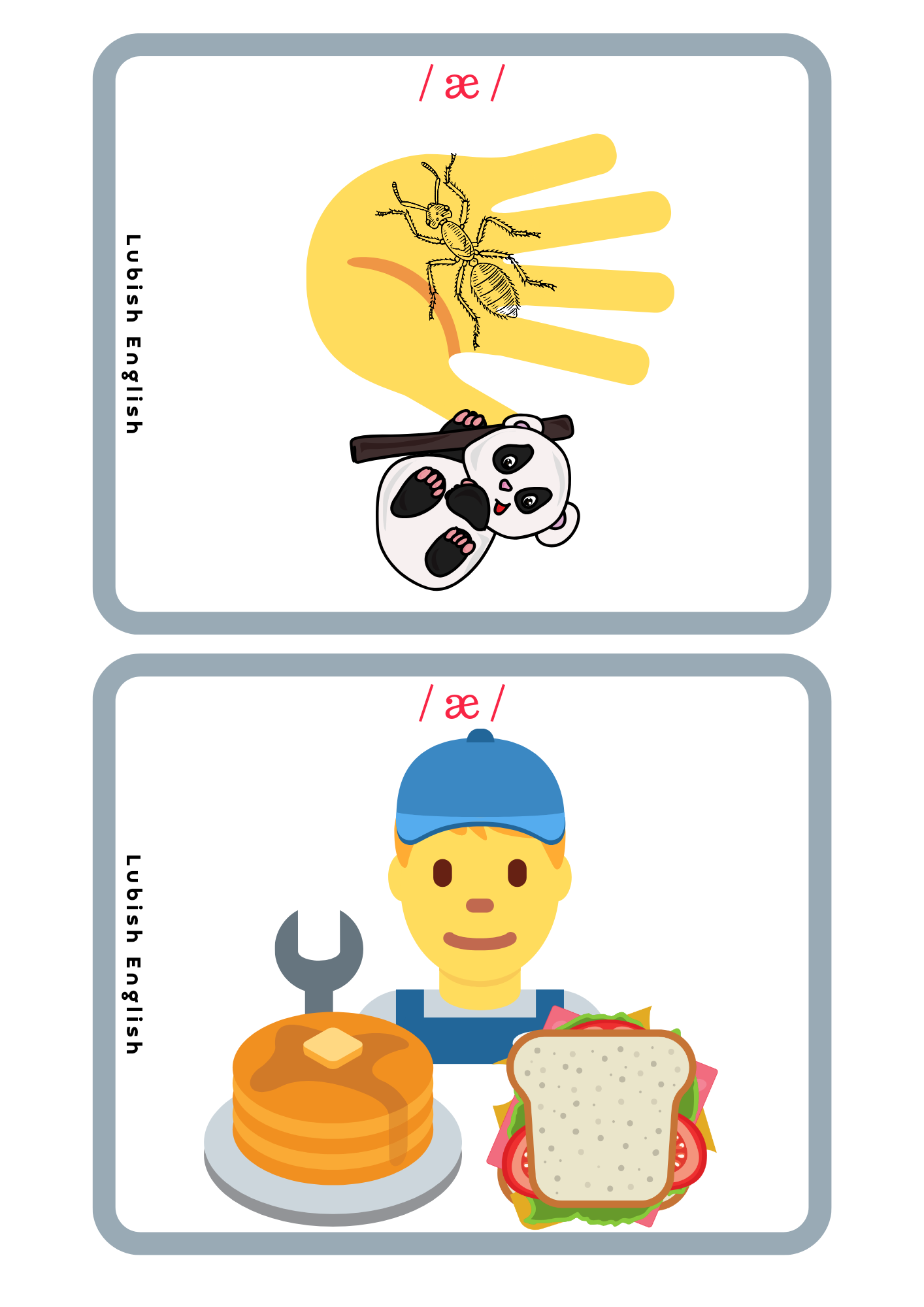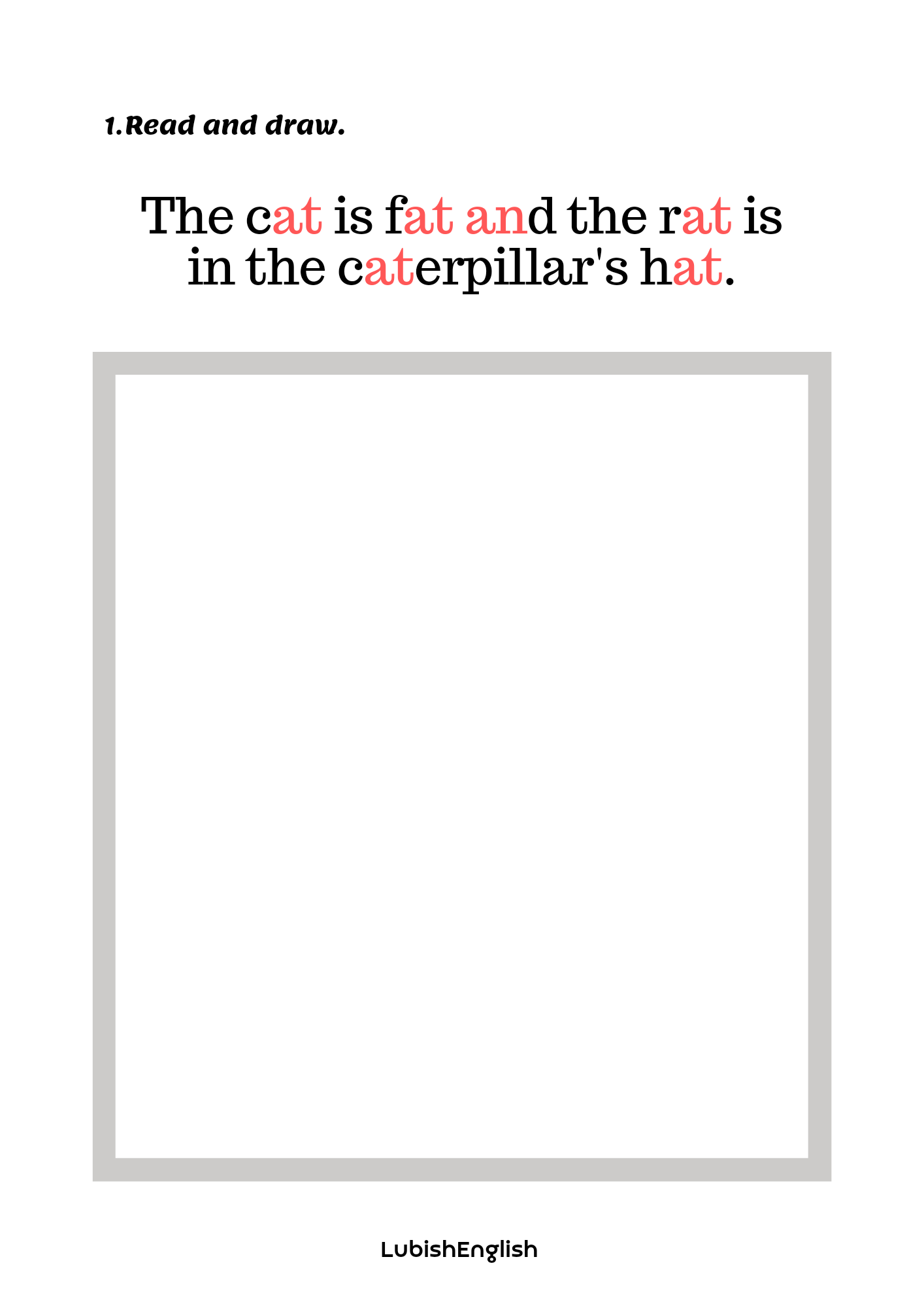2. Read and draw – sześć kart pracy, w której doskonalimy czytanie ze zrozumieniem i prawidłową wymowę krótkiego dźwięku a /æ/. Bawimy się wyobraźnią tworząc kreatywne i nieoczywiste ilustracje.