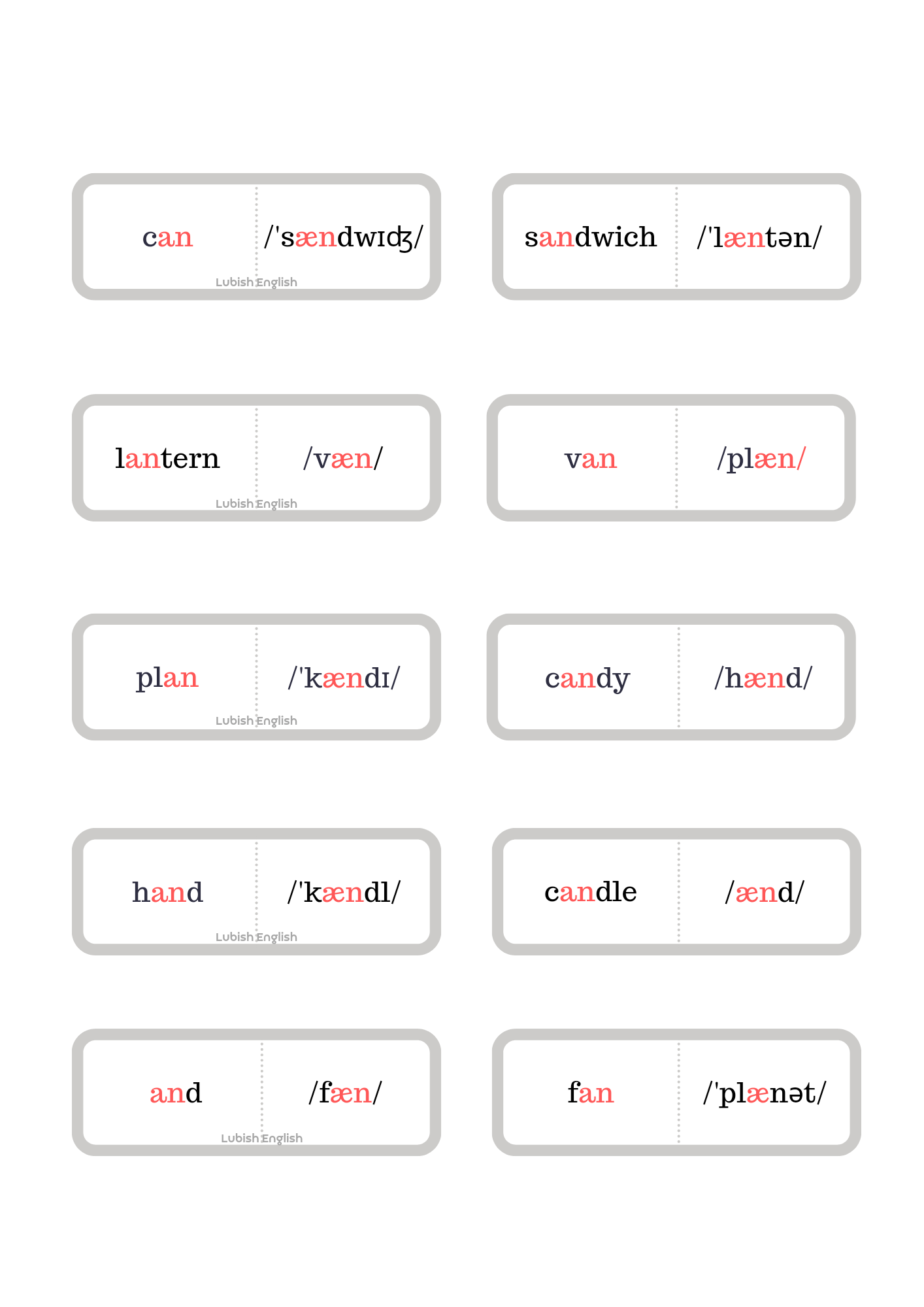 3. Domino – gra dzięki, której utrwalimy czytanie i wymowę krótkiego dźwięku a /æ/.