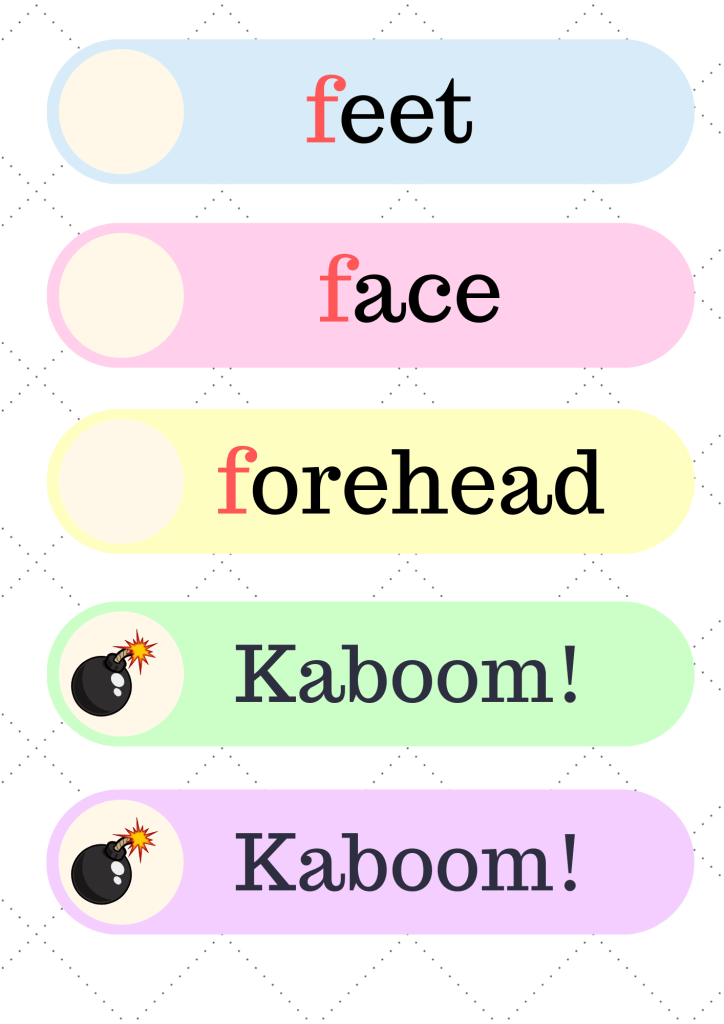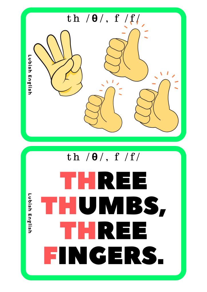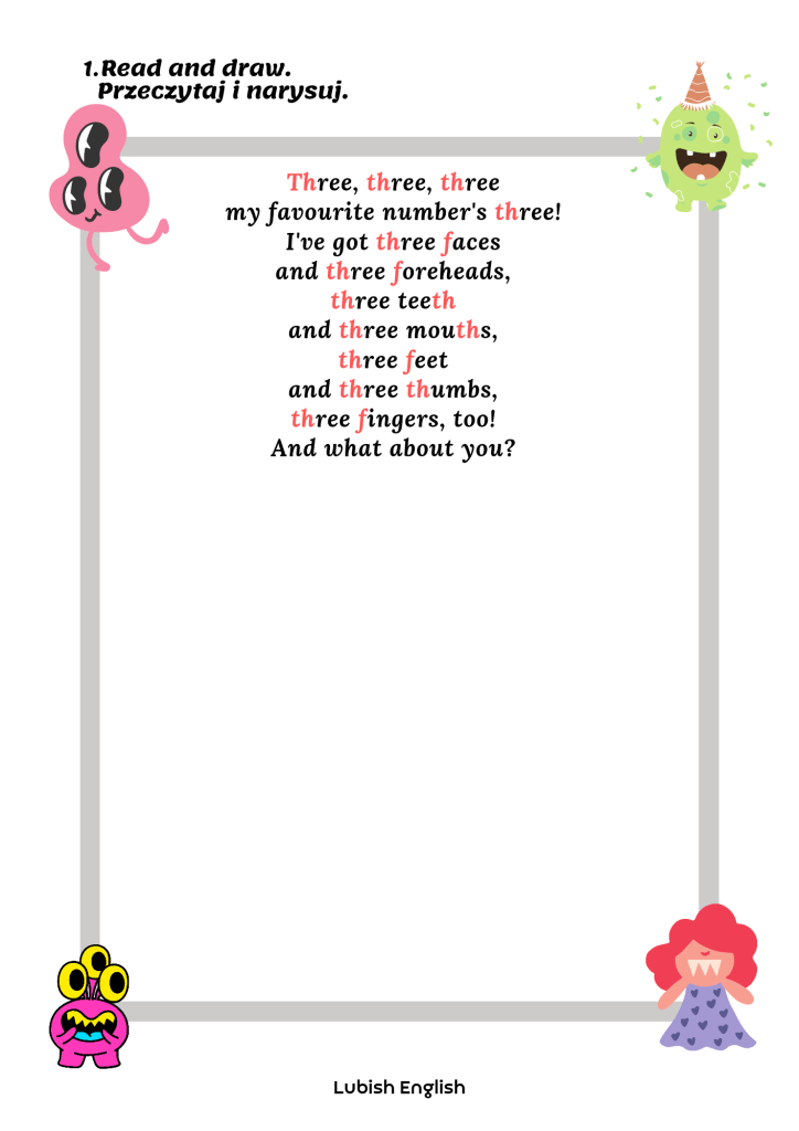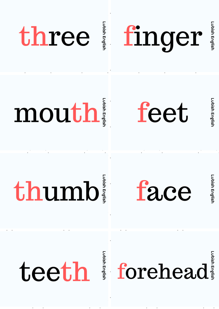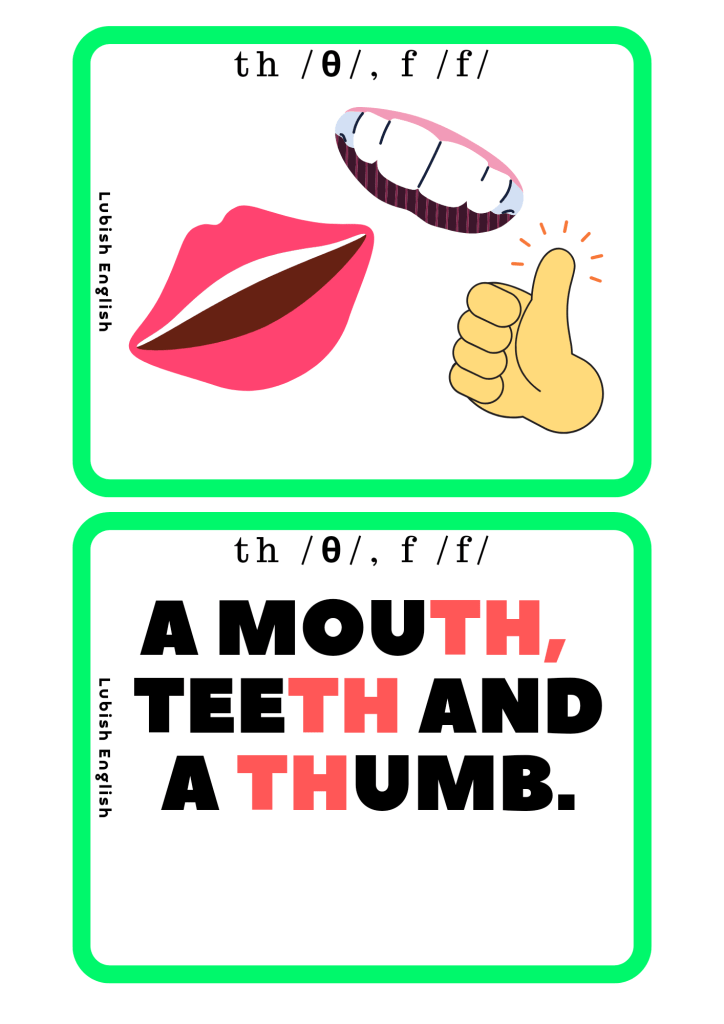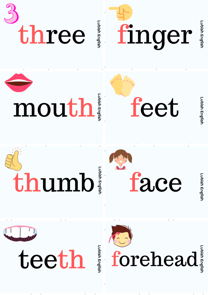 PhonicsPhonics – f /f/ – th /θ/ 1 listopada 20231 listopada 2023 LubishEnglish Zestaw kart dla dzieci f /f/ – th /θ/ – zestaw kart dla dzieci 2. Pictures and sentences f /f/ – th /θ/ – pictures and seNtences 3. Flashcards f /f/ – th /θ/ – flashcards 4. Kaboom f /f/ – th /θ/ – kaboom 5. Read and draw f /f/ – th /θ/ – read and draw Udostępnij: Kliknij, aby udostępnić na X (Otwiera się w nowym oknie) X Kliknij, aby udostępnić na Facebooku (Otwiera się w nowym oknie) Facebook Lubię Wczytywanie… Powiązane Opublikowane przez LubishEnglish Zobacz wszystkie wpisy, których autorem jest LubishEnglish